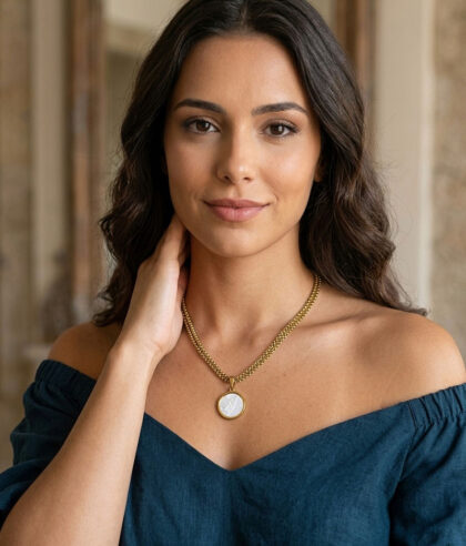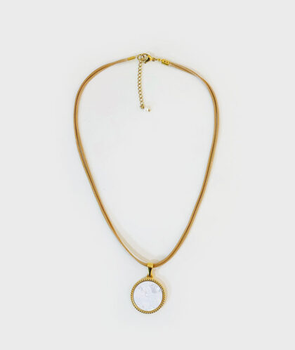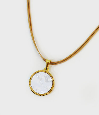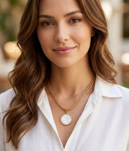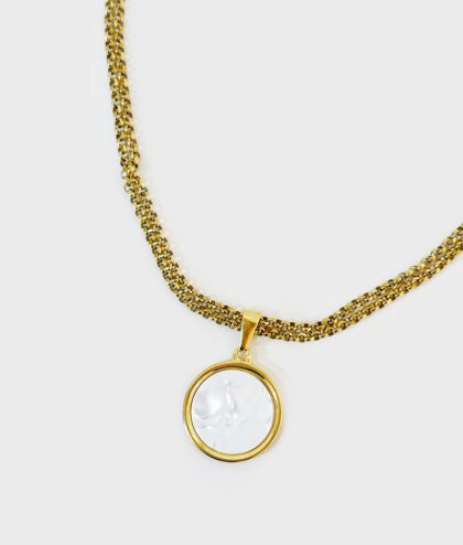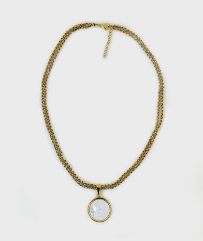 Colar Duplo em Aço com Medalha Madrepérola