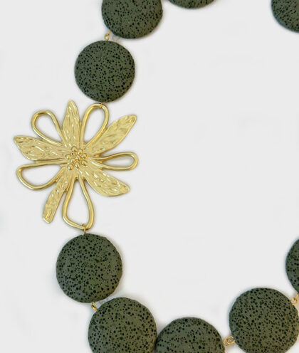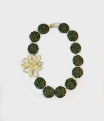 Colar Pedras Vulcânicas e Flor