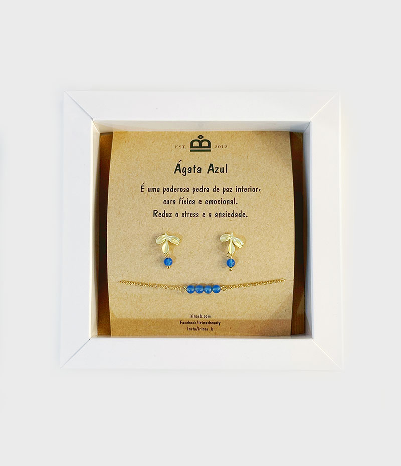 Etiquetas: ágata azul, conjunto pulseira e brincos