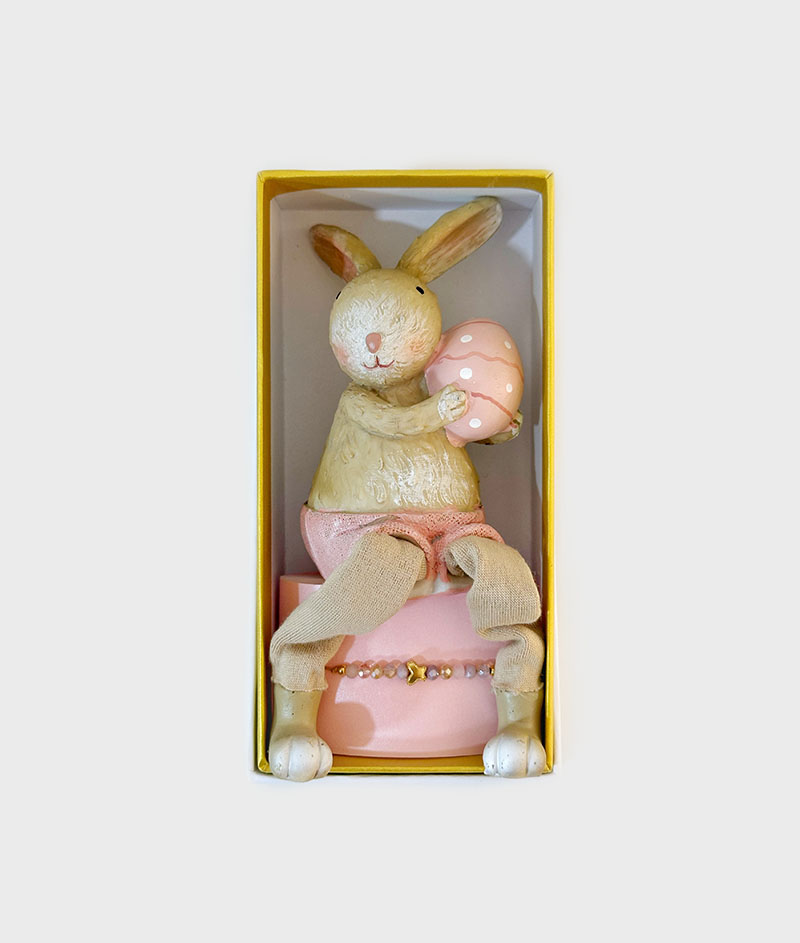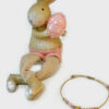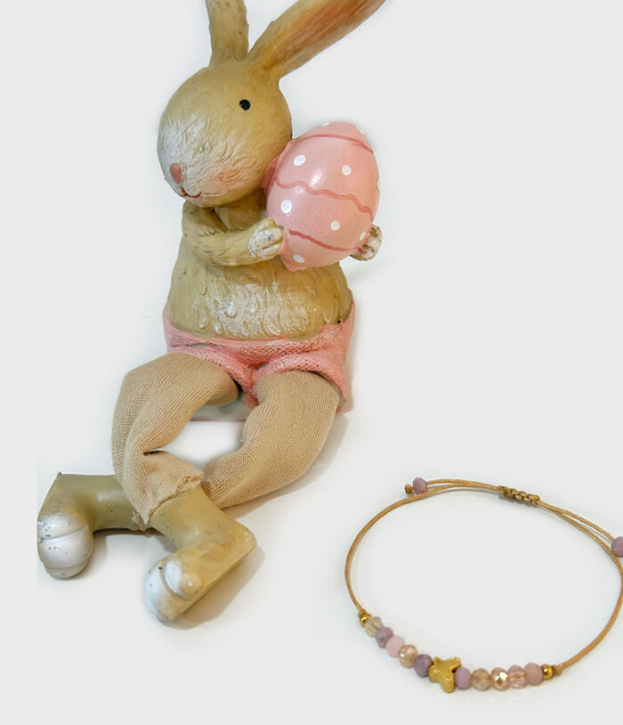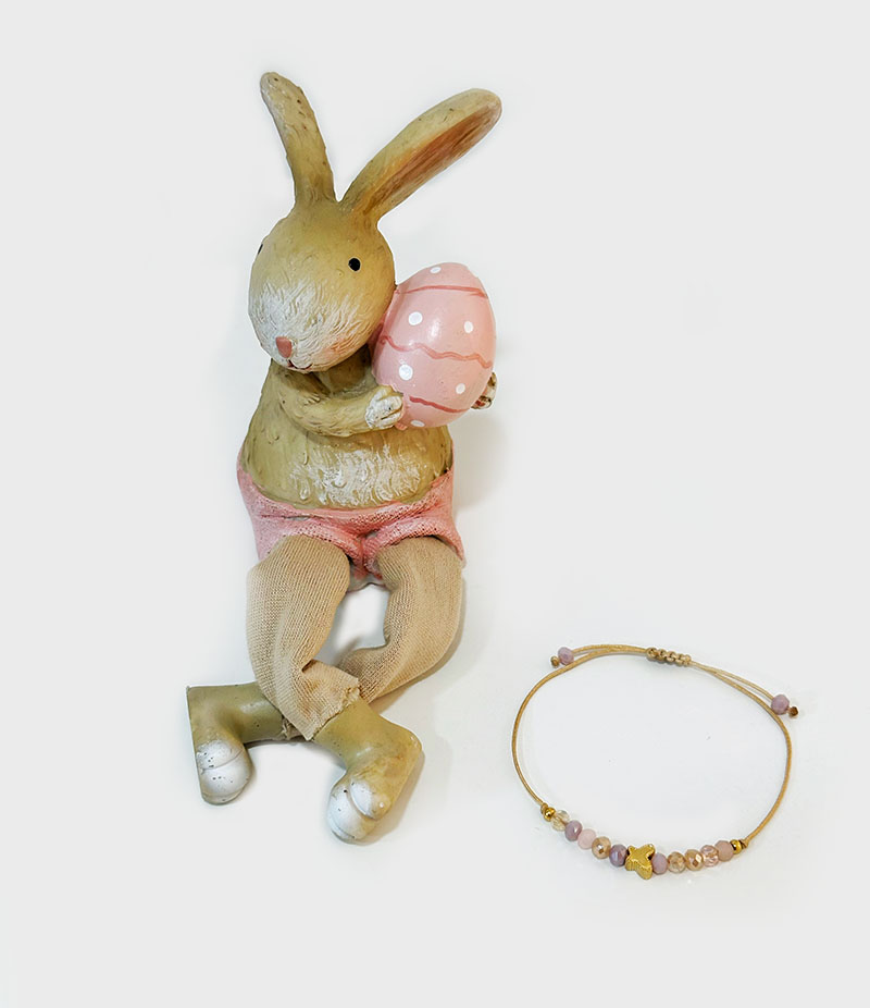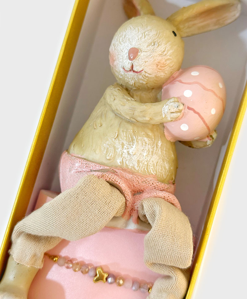 Conjunto composto peça decoratica em forma de coelho em cerâmica e pulseira de cristais