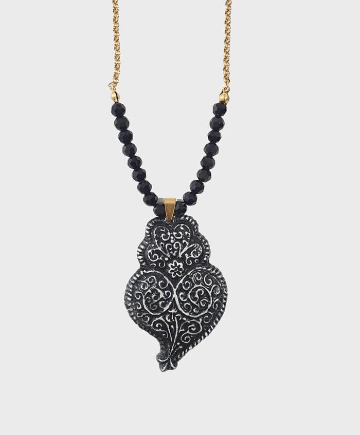 - Coração de Viana: Este ícone da cultura portuguesa, o coração de Viana, é produzido à mão em cerâmica de cor preta, com detalhes que refletem a rica tradição artesanal de Portugal. O coração simboliza o amor e a devoção, tornando este colar um presente perfeito para momentos especiais.