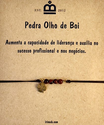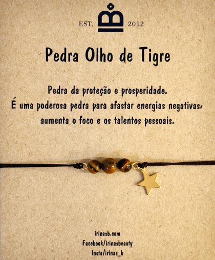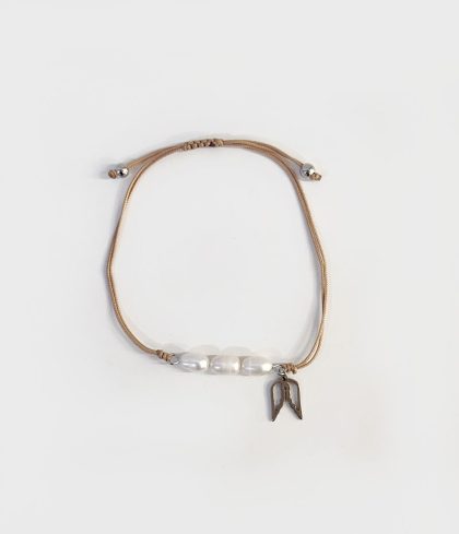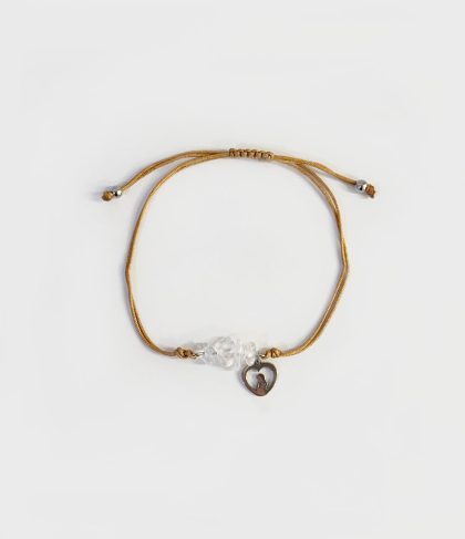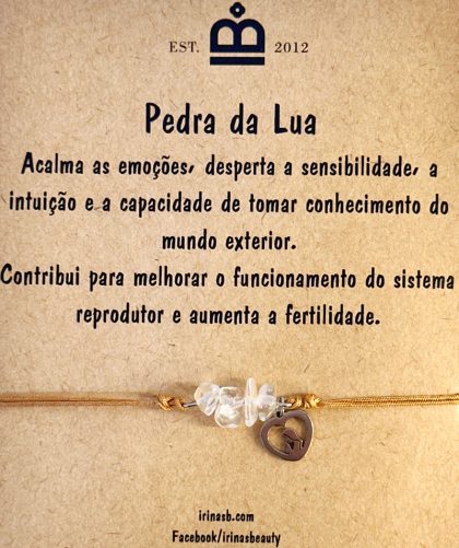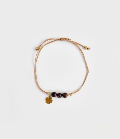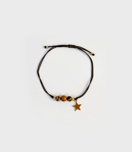 Pulseira ajustável com pedras pequenas âmbar e pendente em aço.